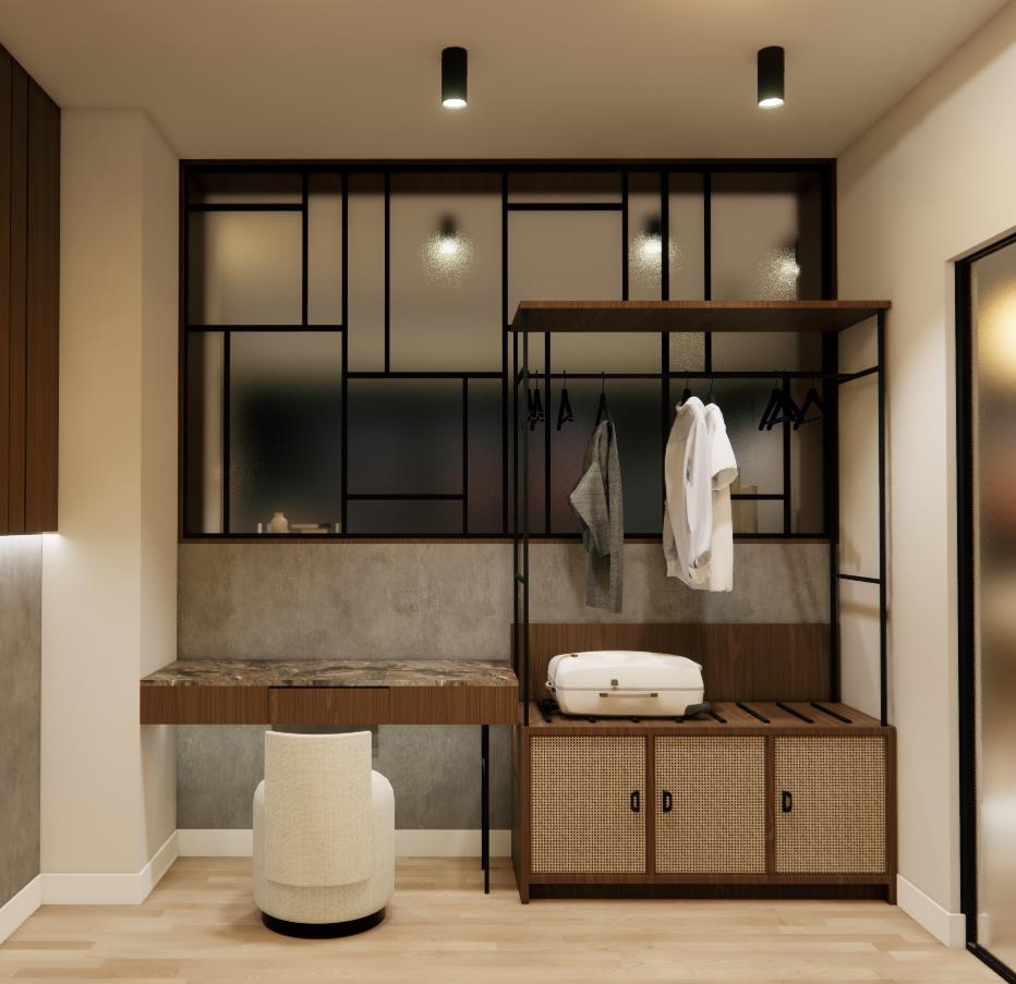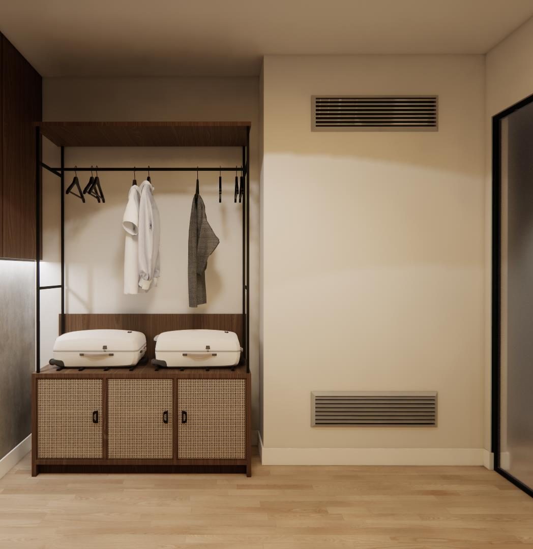 Located on the mezzanine level, the apartment includes 2 separate bedrooms and a spacious living room overlooking Aiolou pedestrian street.